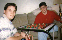 My buddy, Brian, and I playing checkers with candy on New Years Eve.