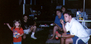 Everyone's enjoying the bubbles that I am blowing. From left to right, Cousin Rebecca, Uncle Bill(Rebecca's father), Grandma, Aunt Beverly(Rebecca's Mother), Me, and my mother.